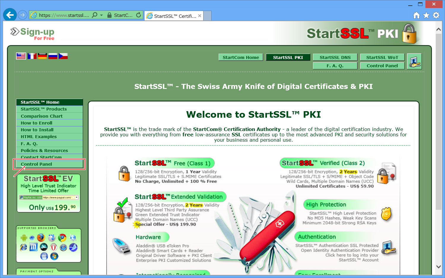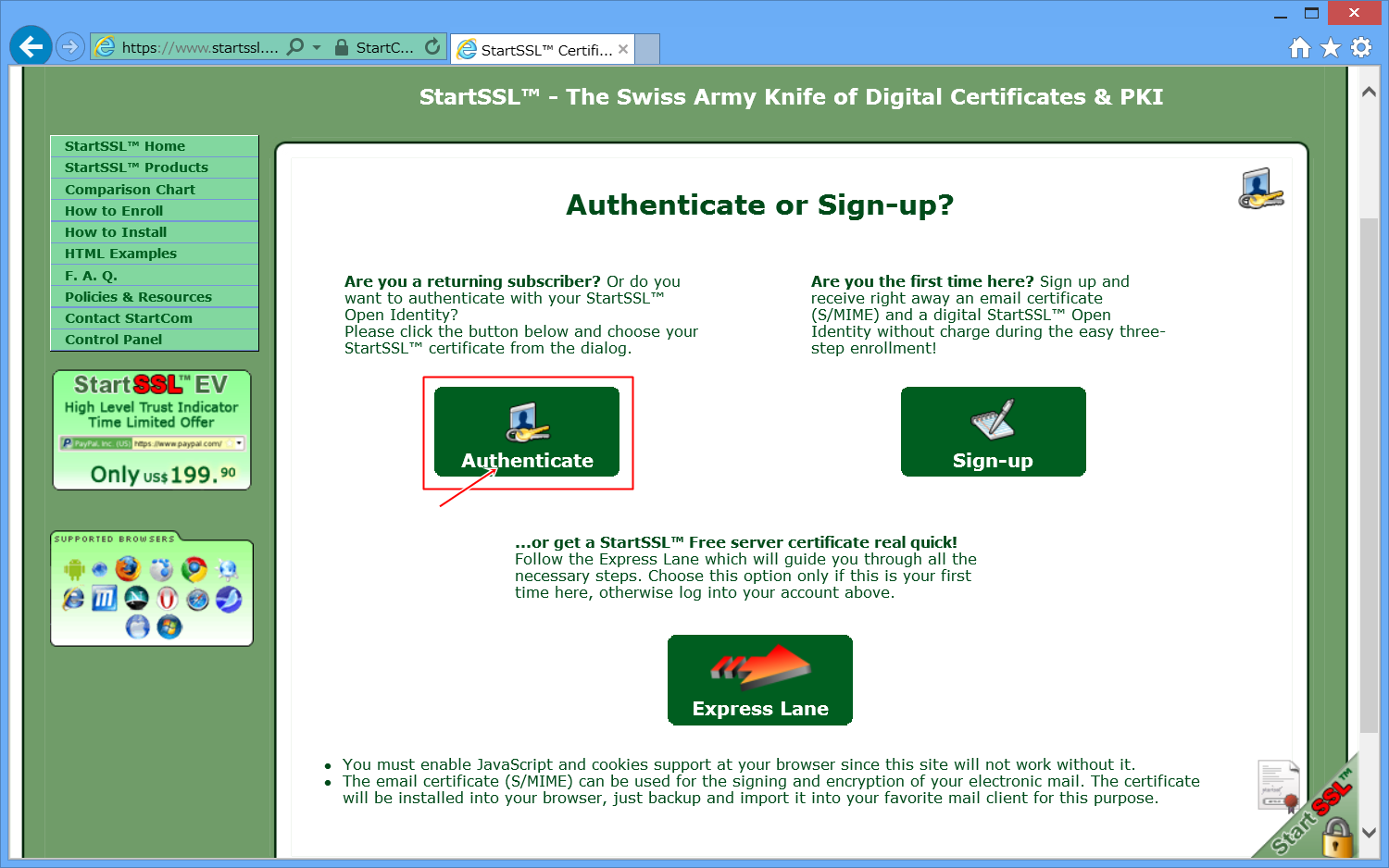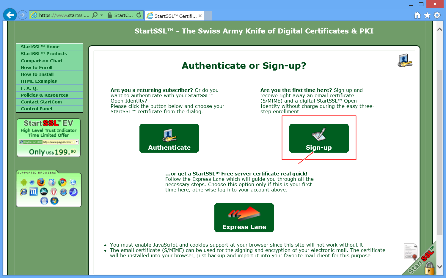 StartSSLの公式ページへ移動します。