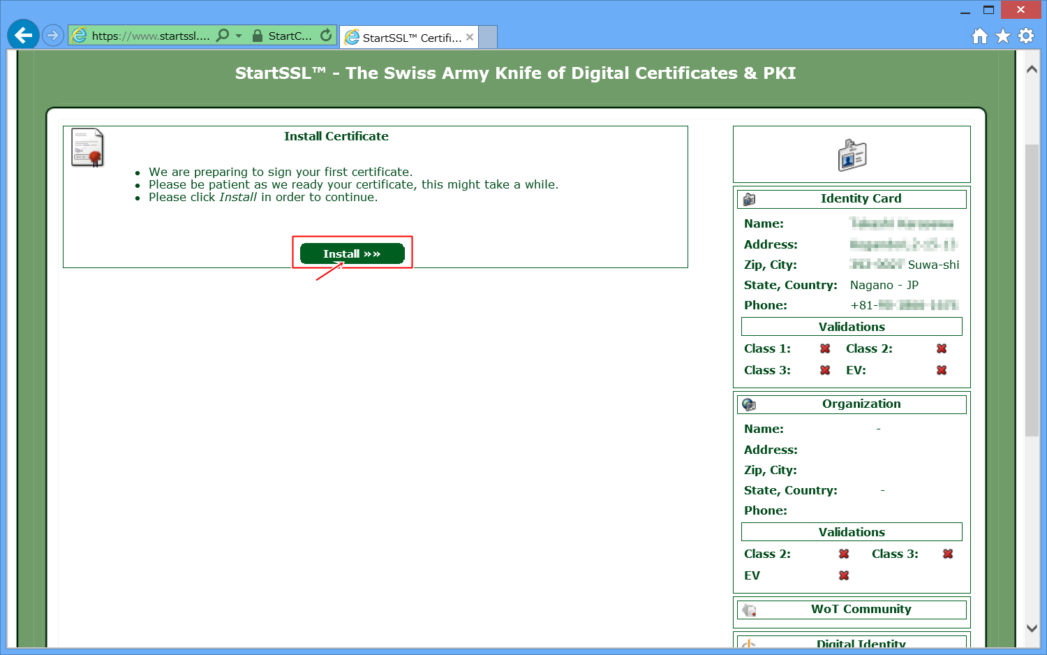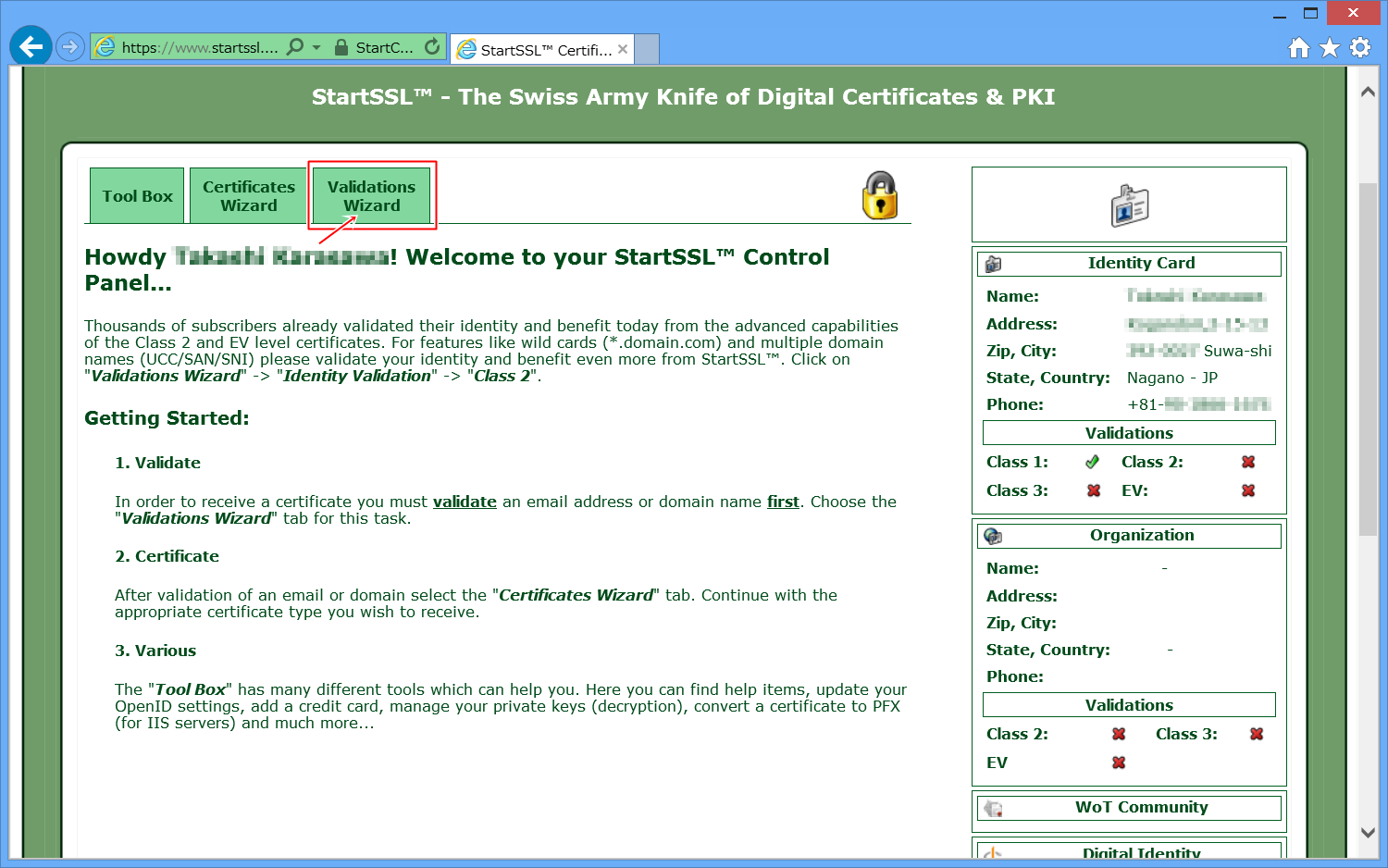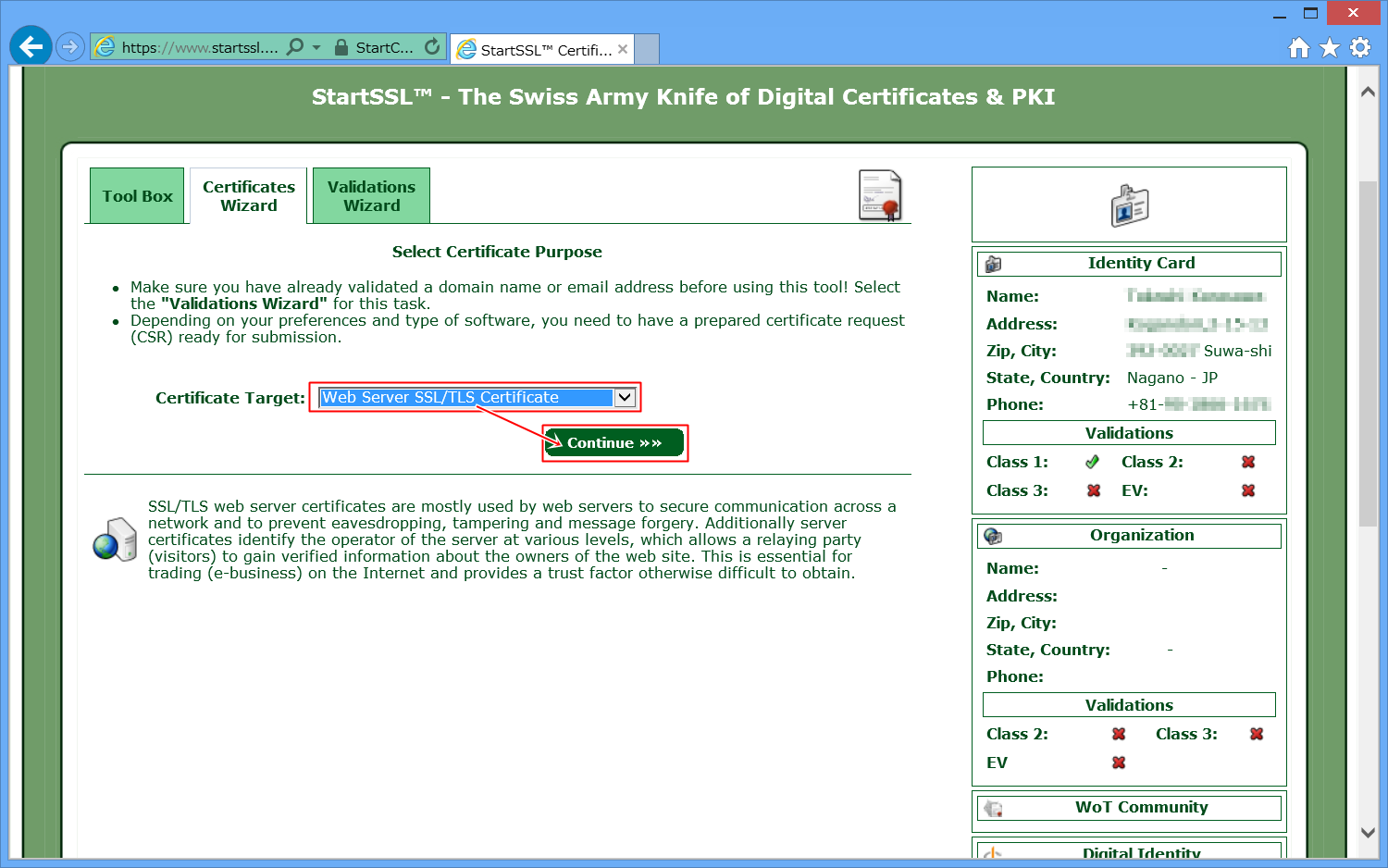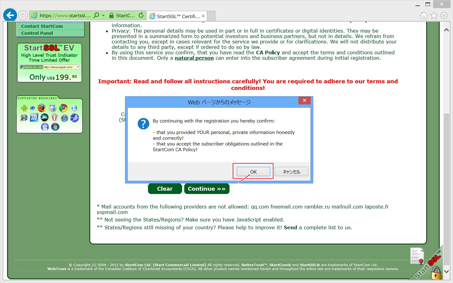StartSSLの公式ページへ移動します。