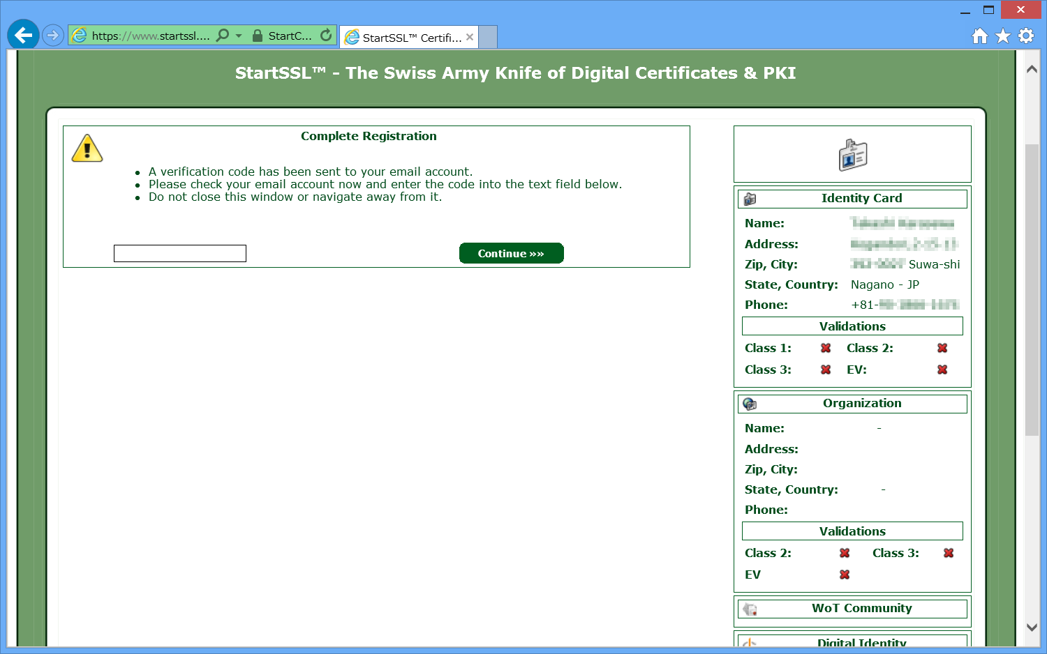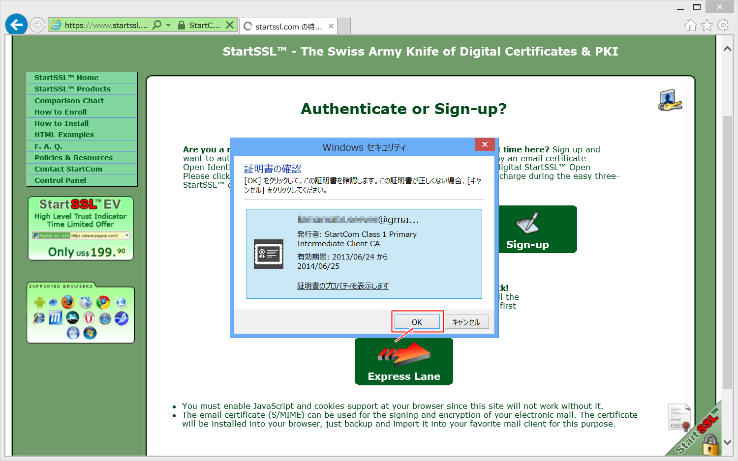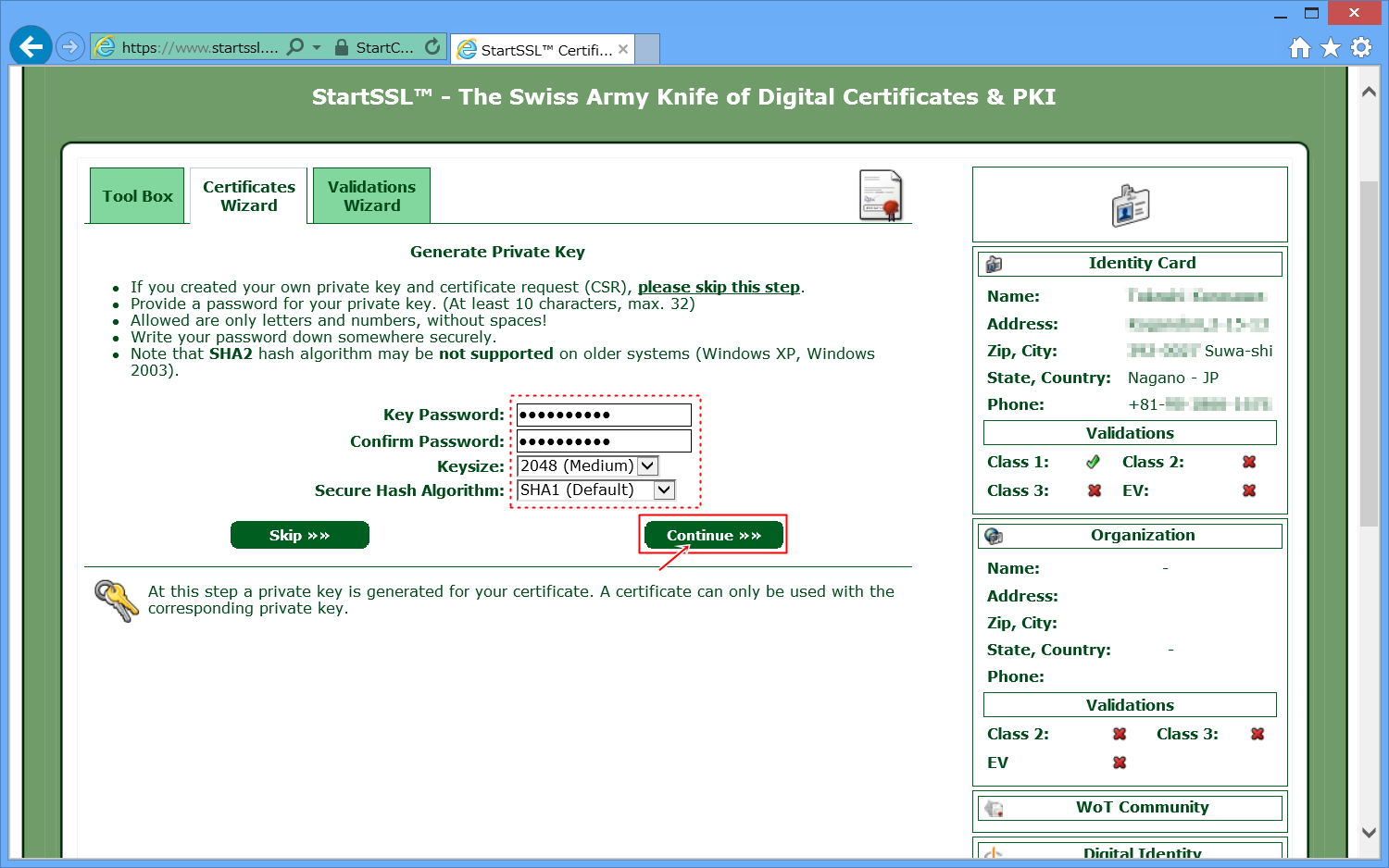 StartSSLでは、SSLによる証明書を使用し、パスワードの入力等はありません。