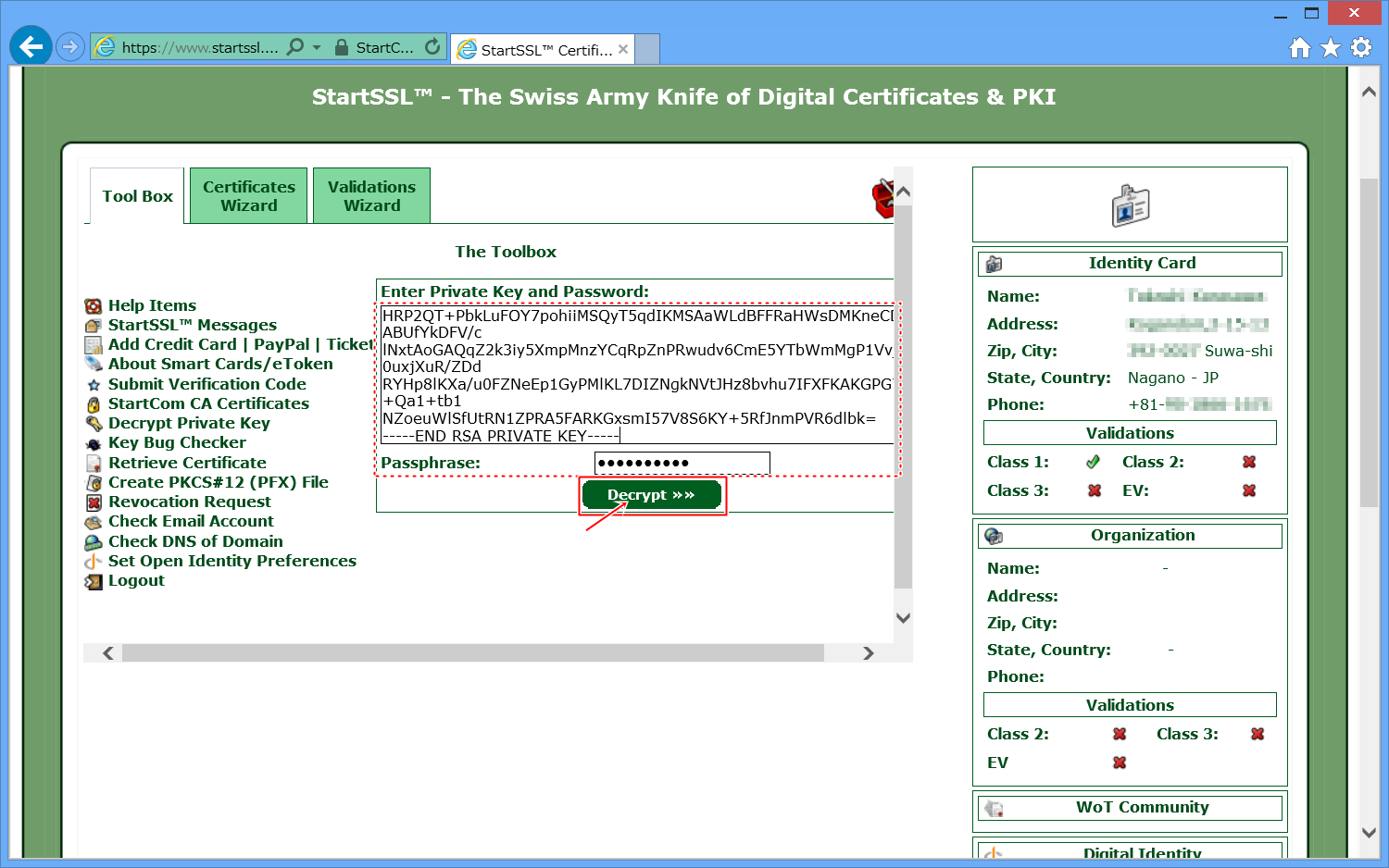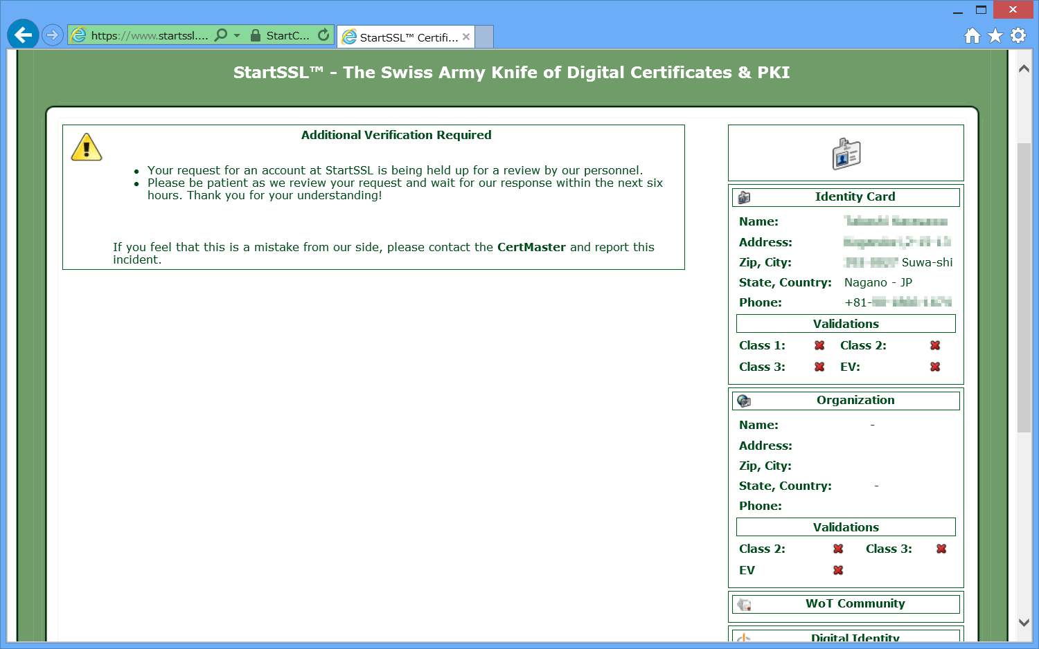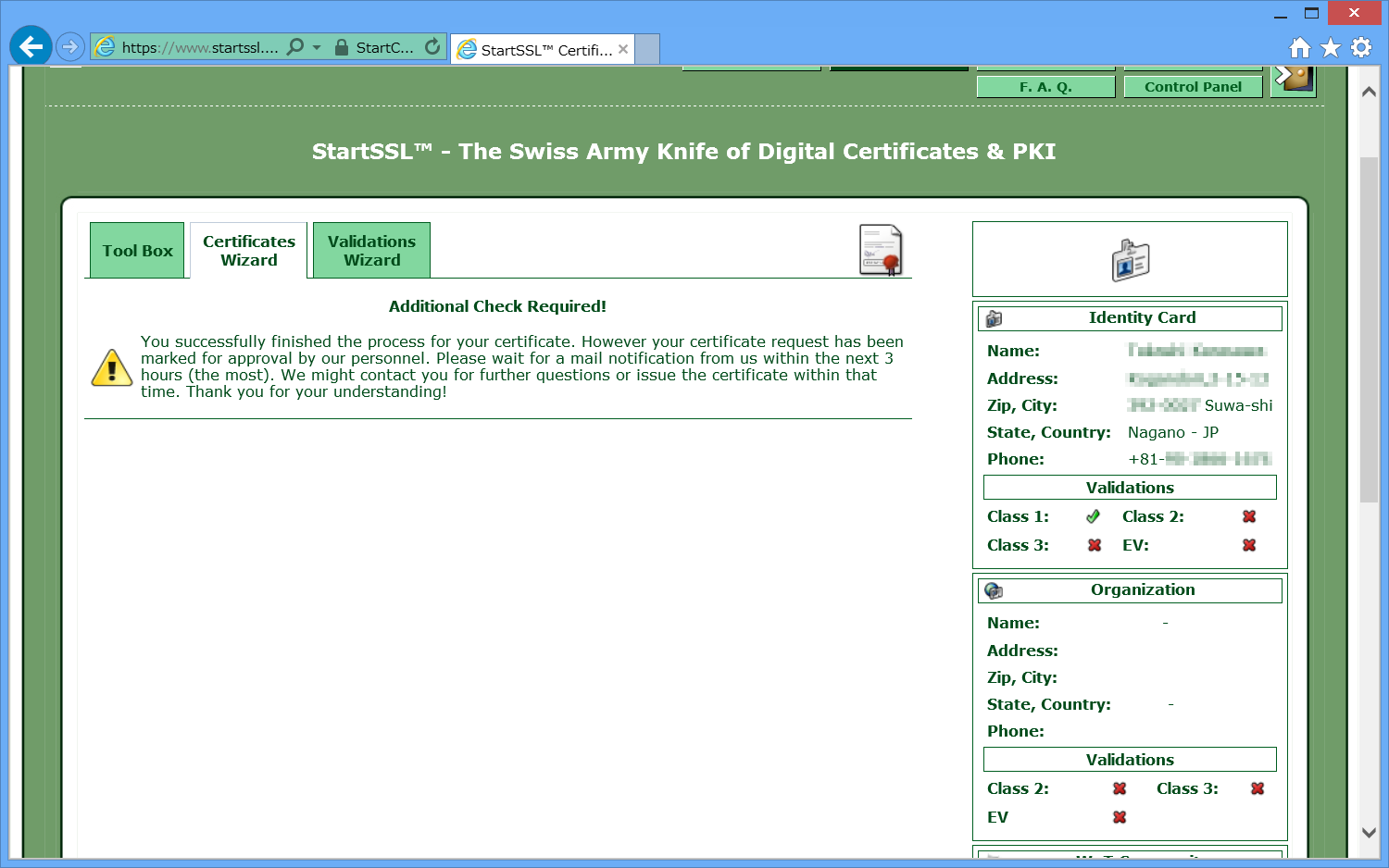 StartSSLでは、SSLによる証明書を使用し、パスワードの入力等はありません。