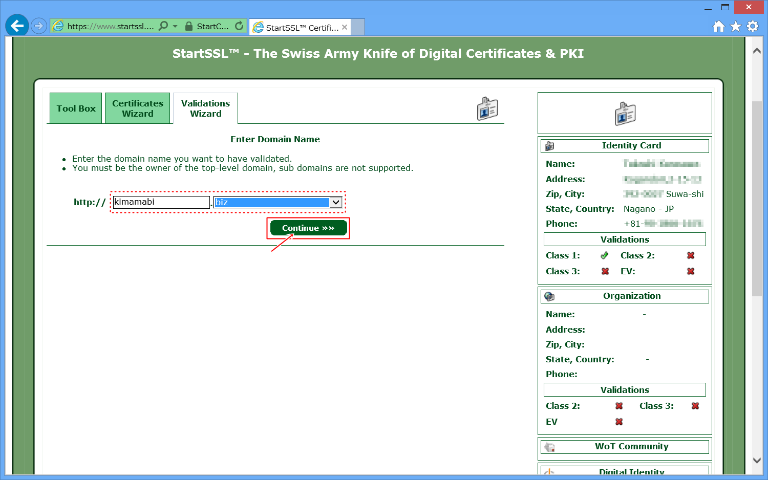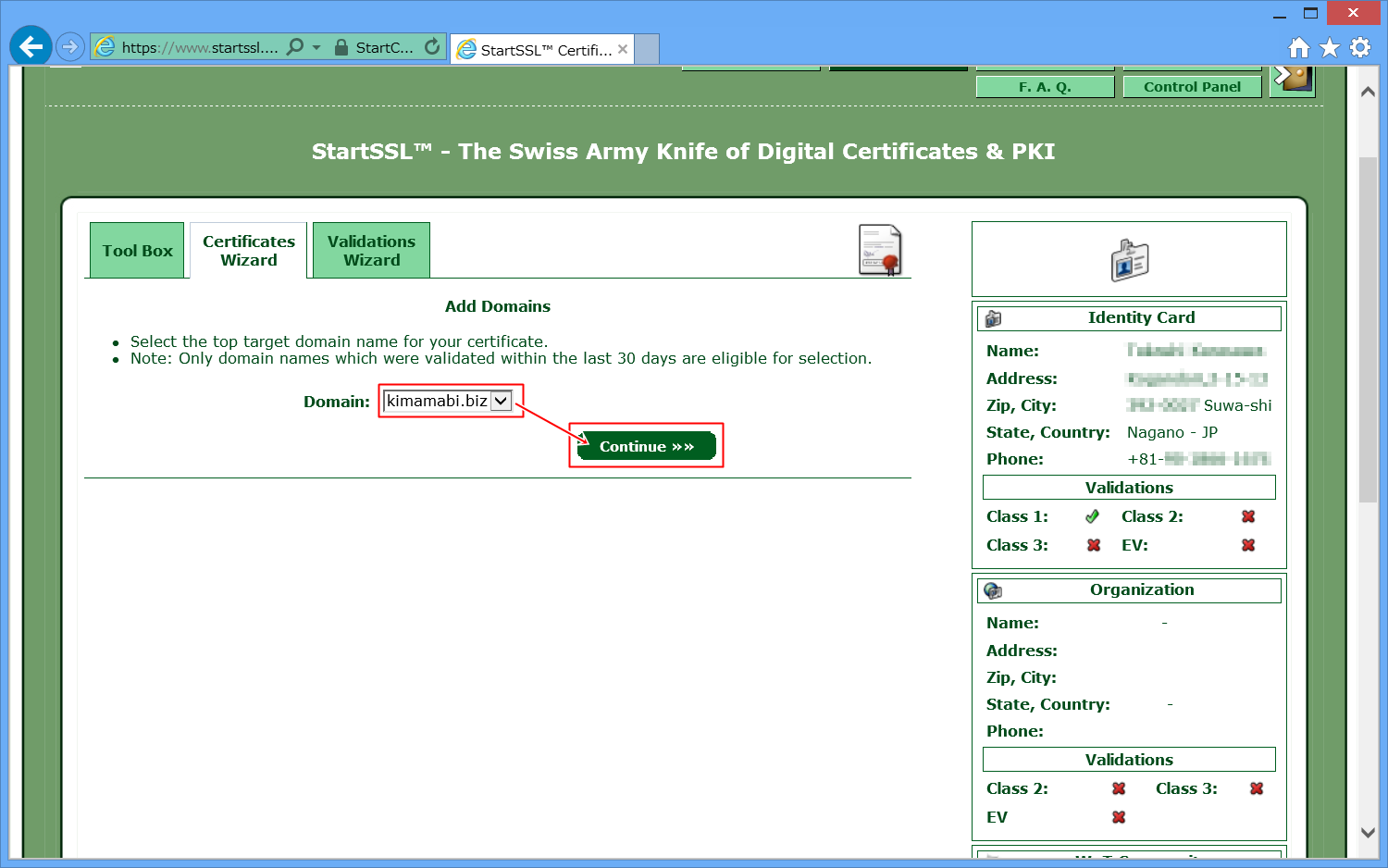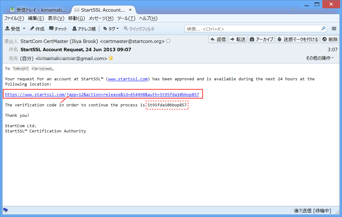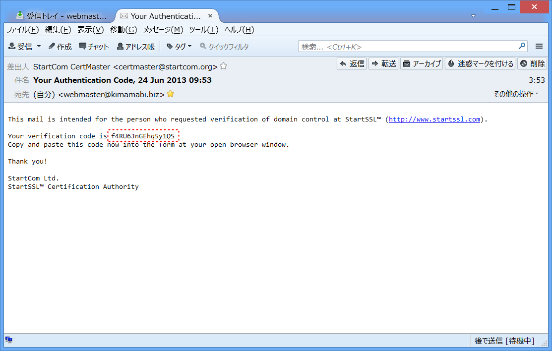 StartSSLに、自分のドメインを認証してもらいます。
