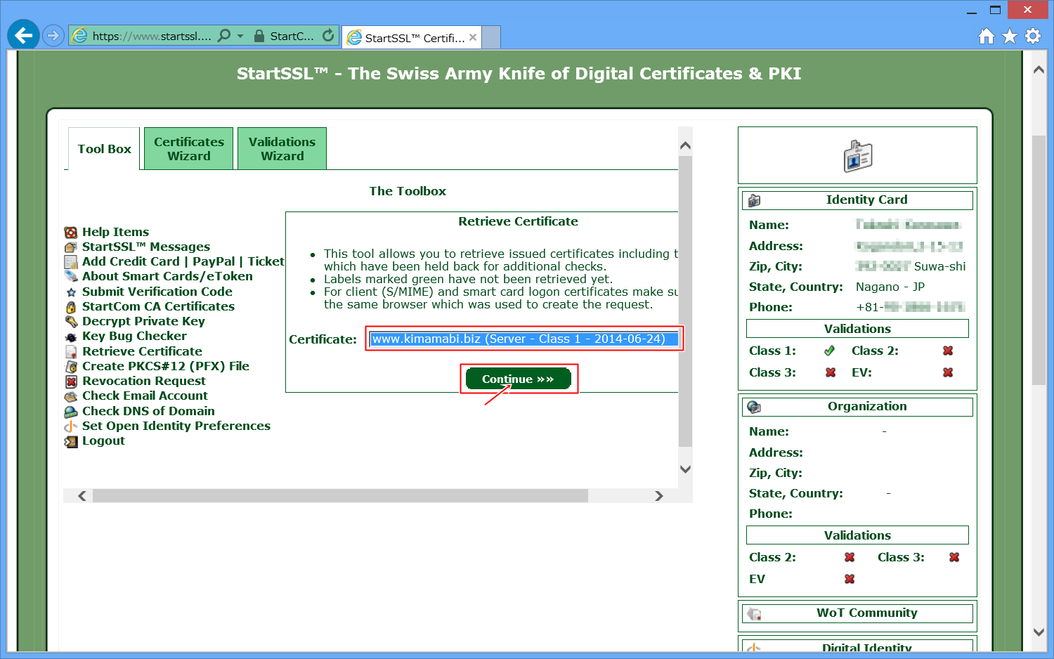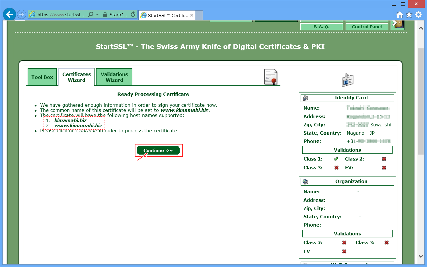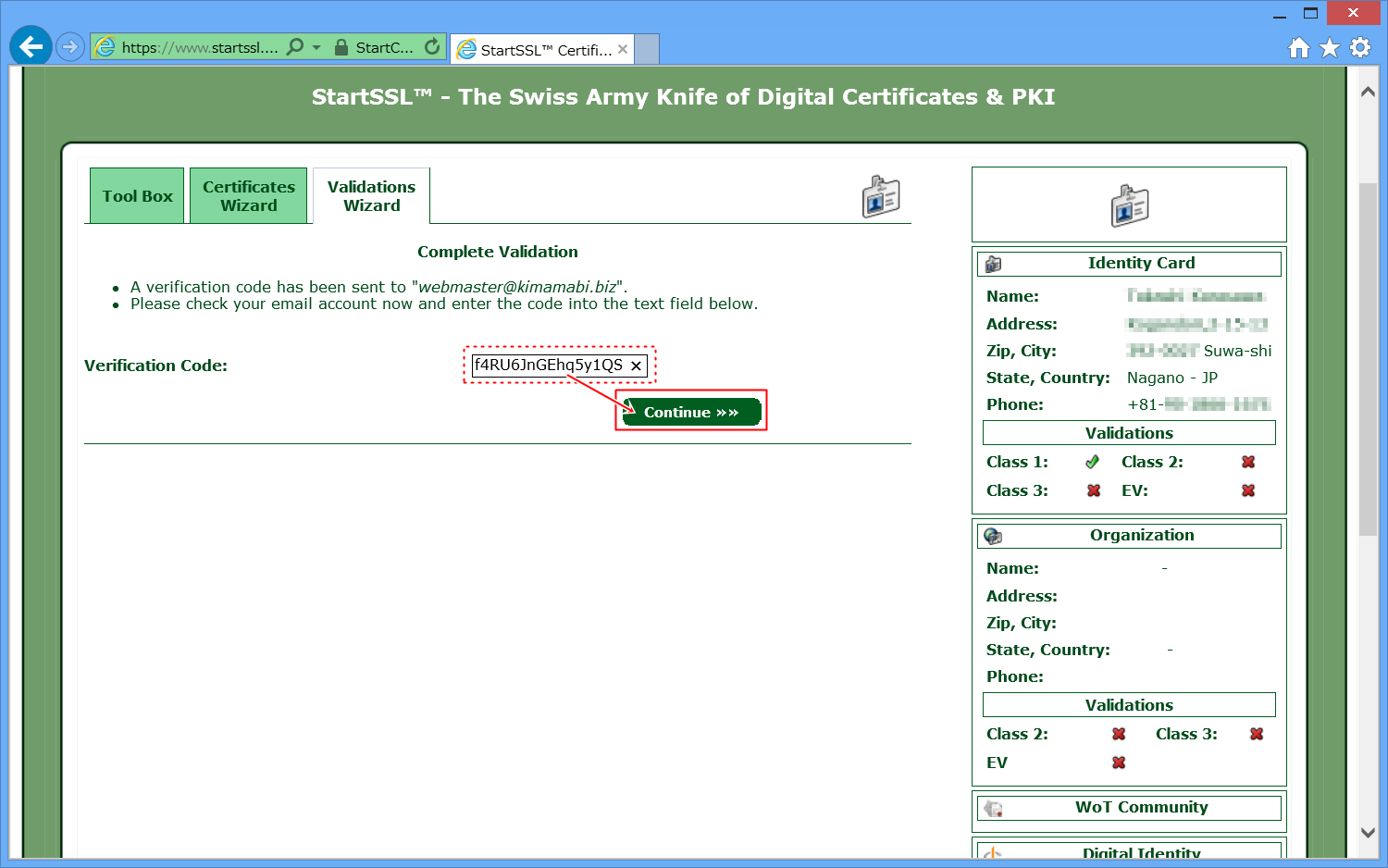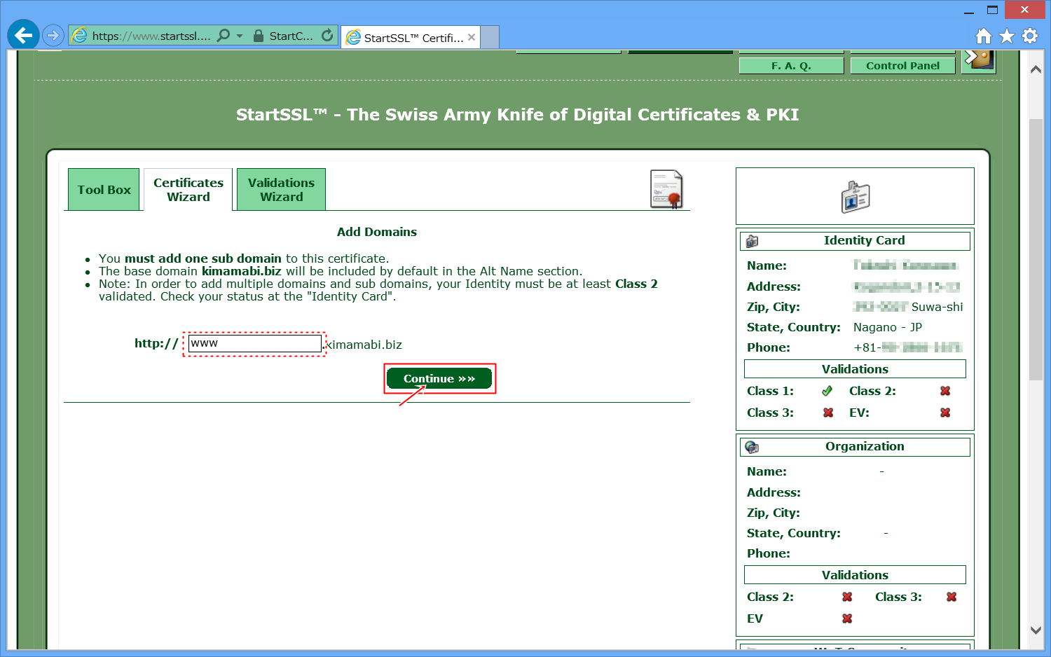 StartSSLに、自分のドメインを認証してもらいます。