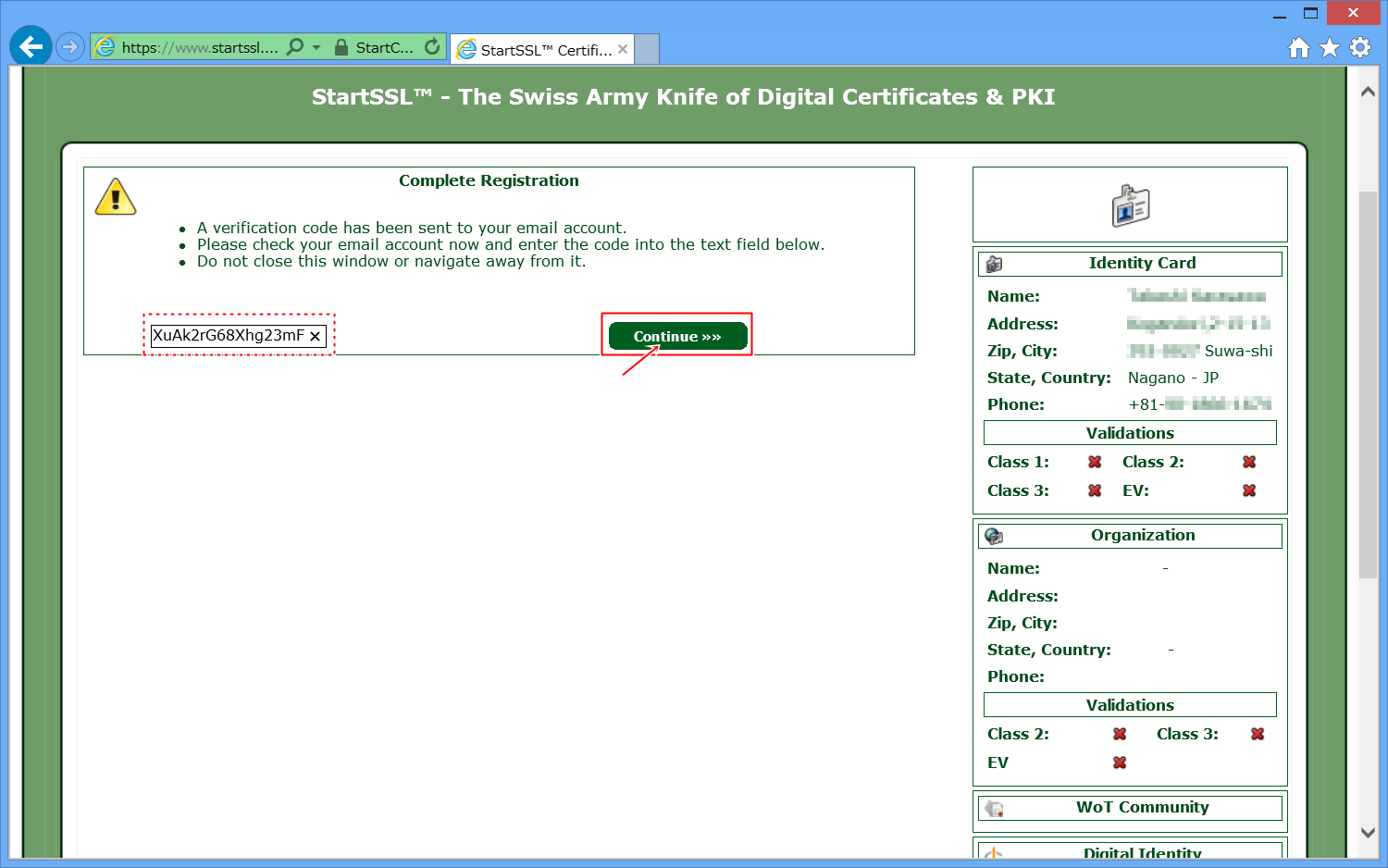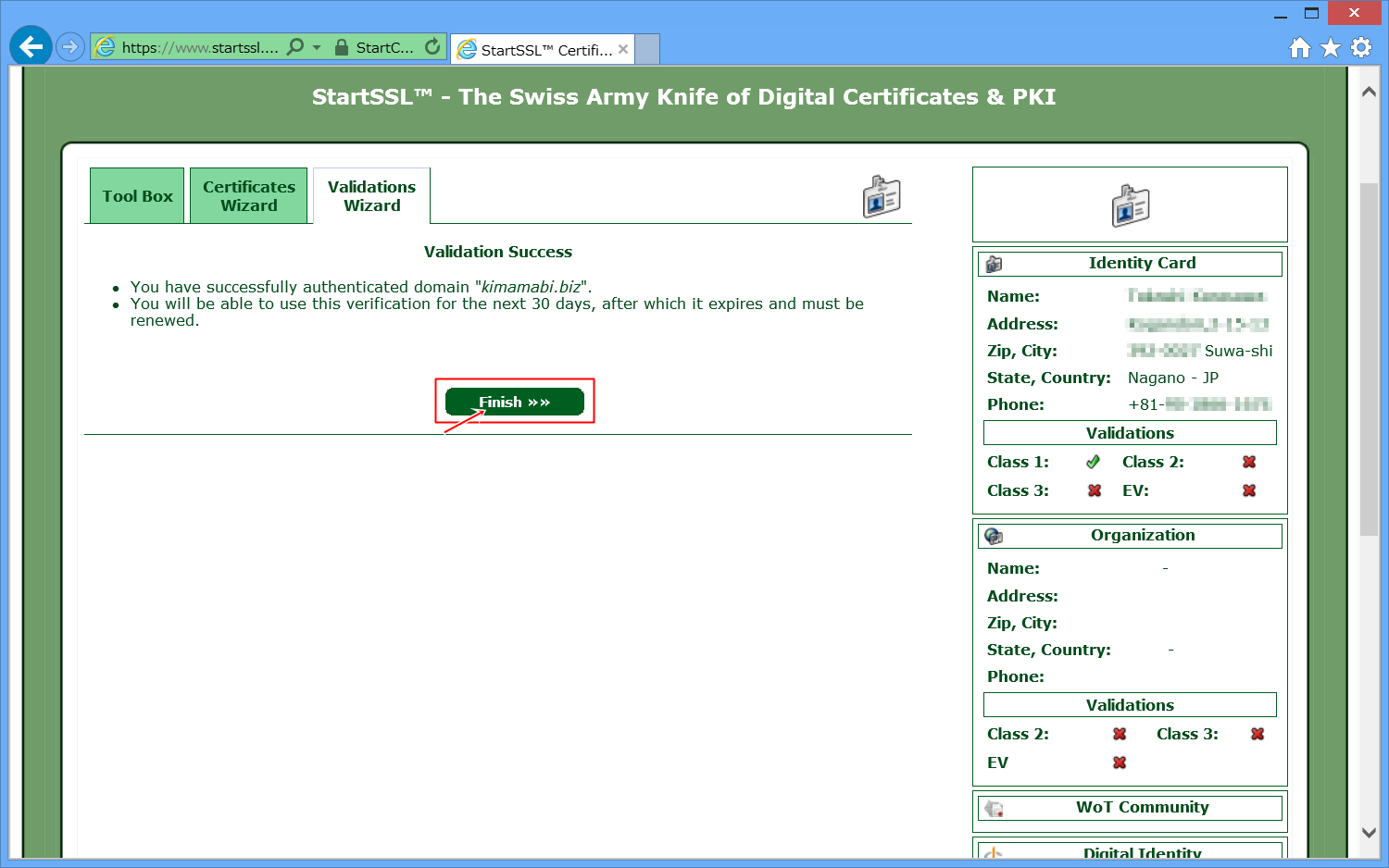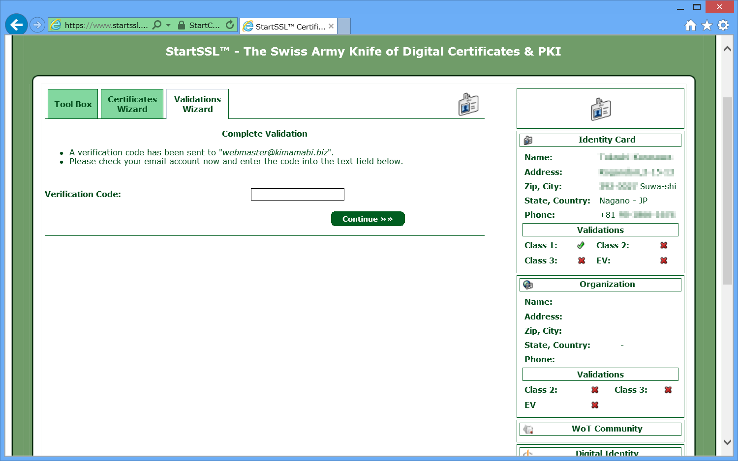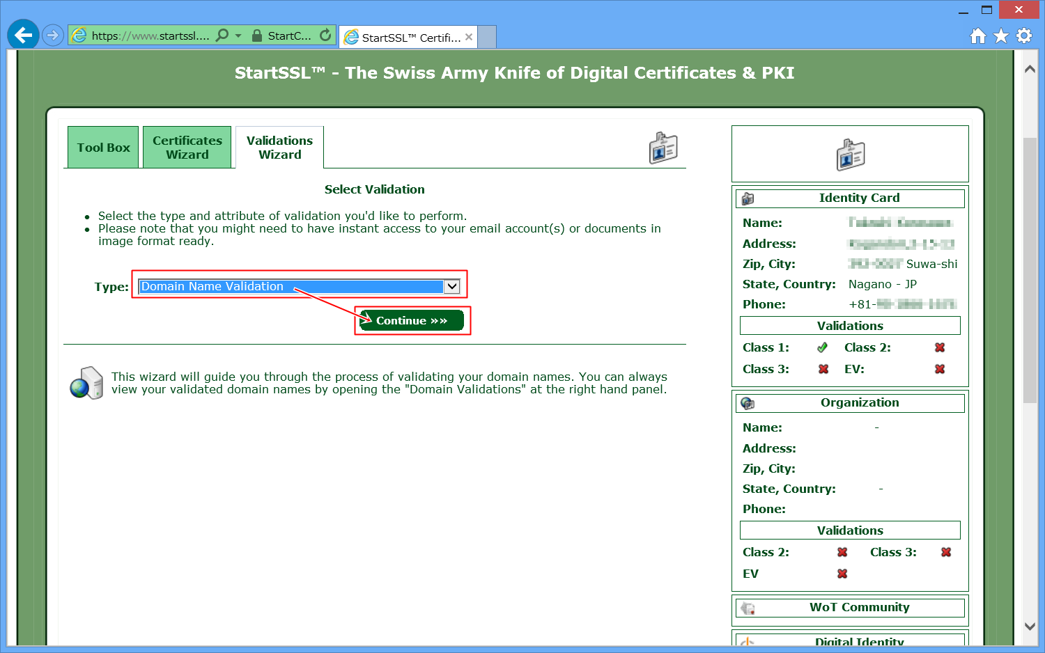 StartSSLに、自分のドメインを認証してもらいます。
