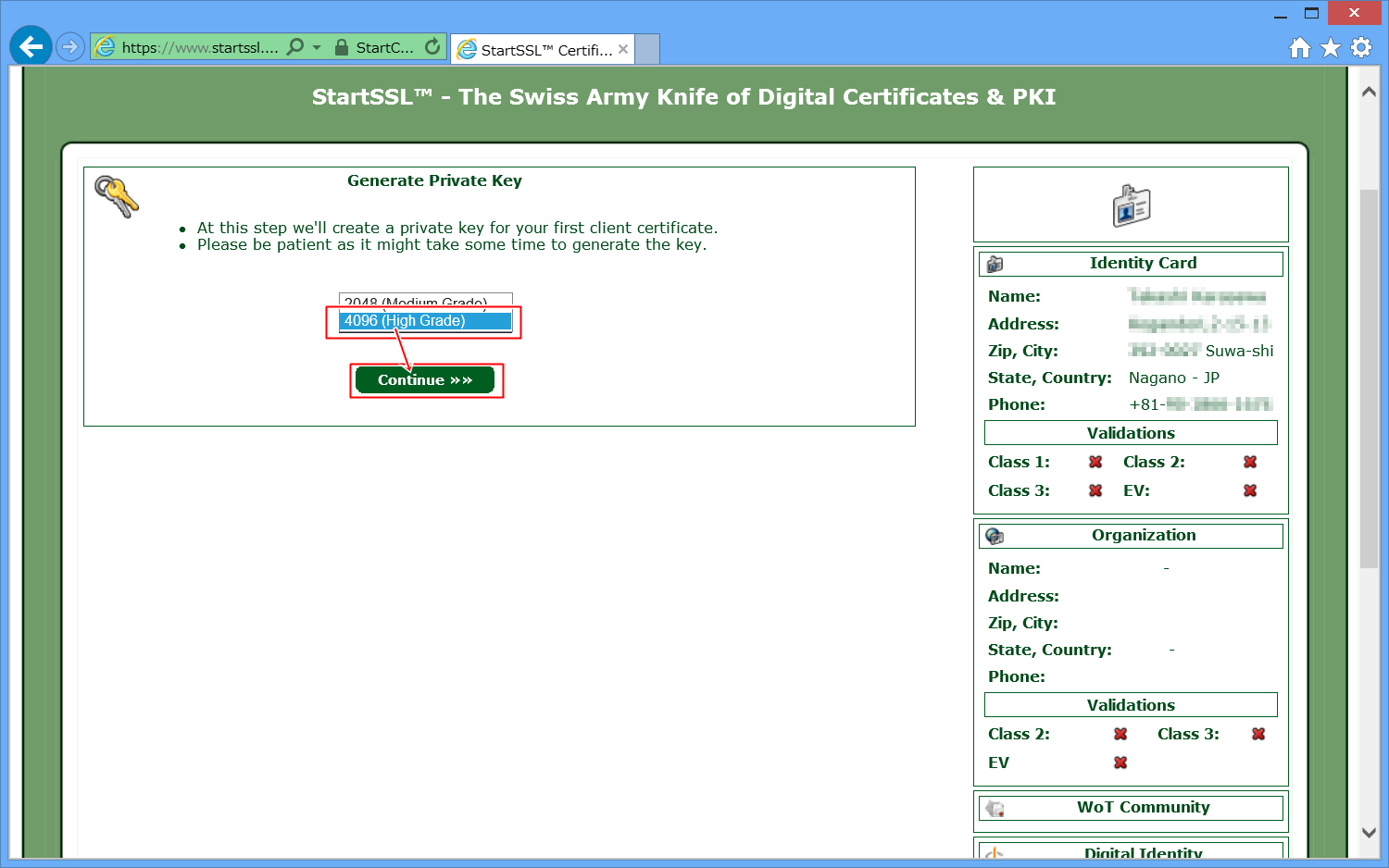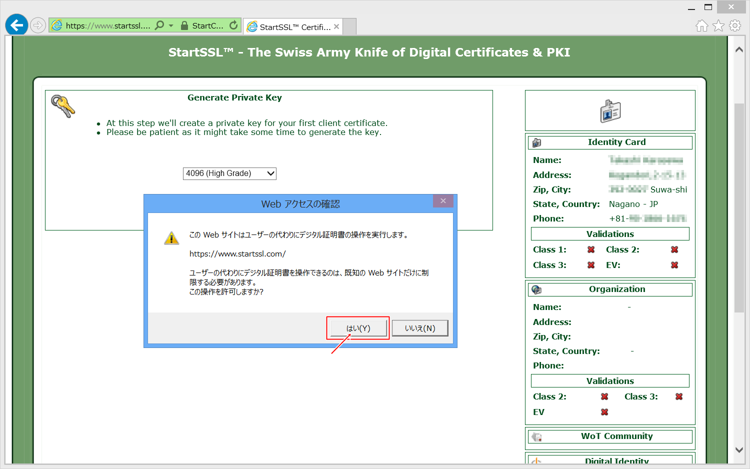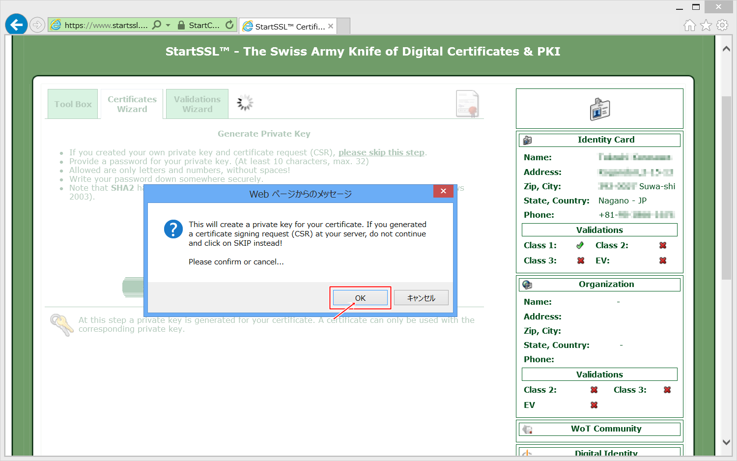 StartSSLによる認証鍵の発行