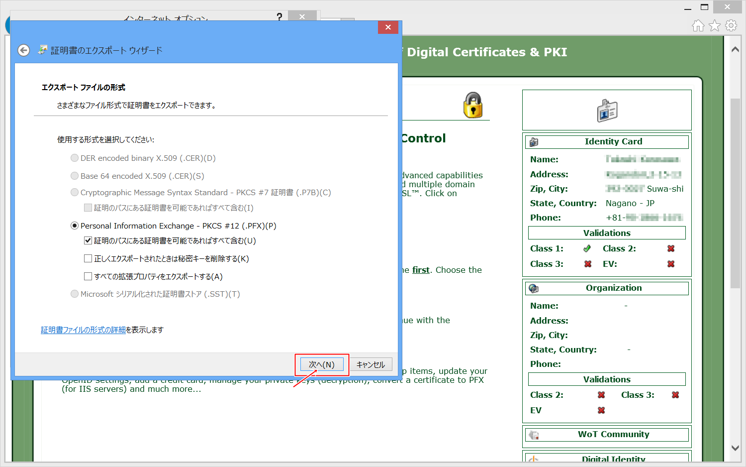 そこで、ログイン用の証明書をバックアップしたいと思います。