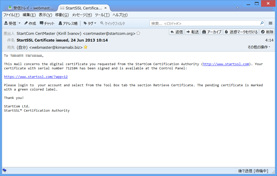 以上で、StartSSLを使った証明書の取得は終了です。長々と作業、お疲れ様でした。